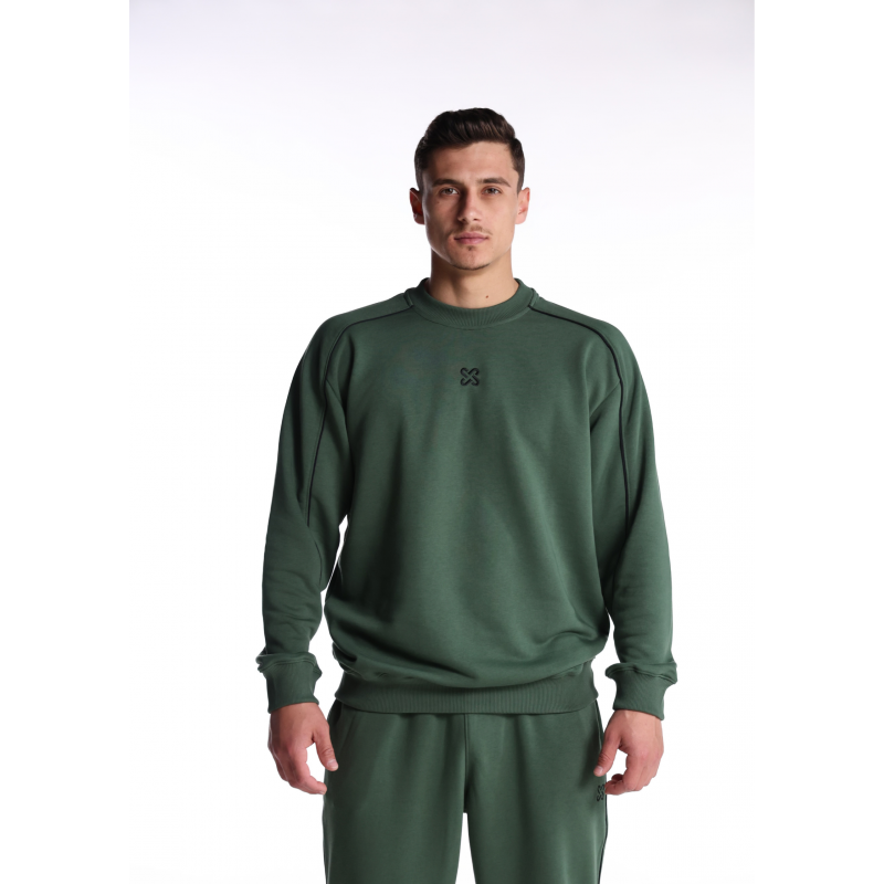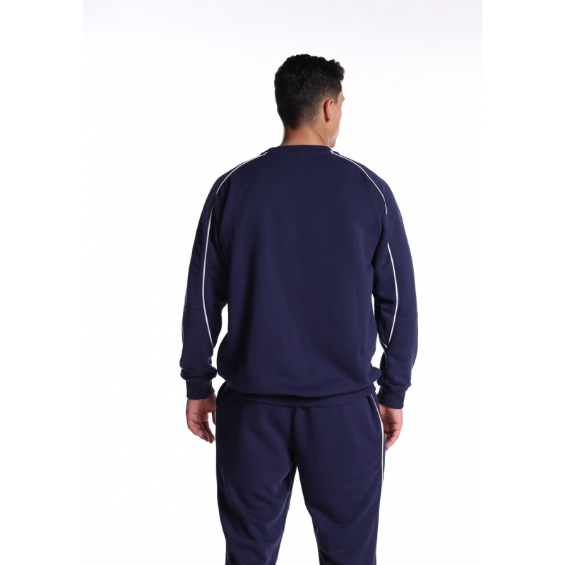 A fresh essential from our SS'25 men's lineup. Crafted from ultra-soft cotton blend fabric, this navy crewneck delivers all-day comfort with a clean, athletic edge. The white piping along the sleeves adds a dynamic contrast, while the embroidered cross logo at the chest keeps it sleek and understated.