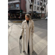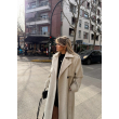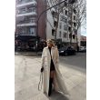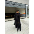 Pallto e gjatë e zezë me kopsa përpara, klasike dhe elegante, që ofron ngrohtësi dhe stil të rafinuar për çdo rast.