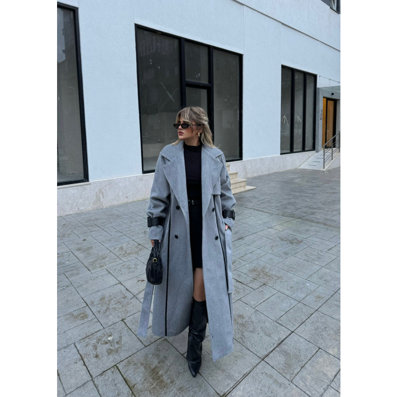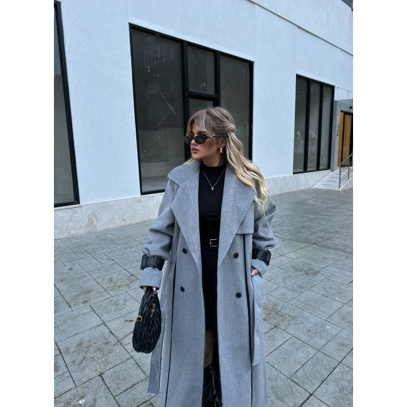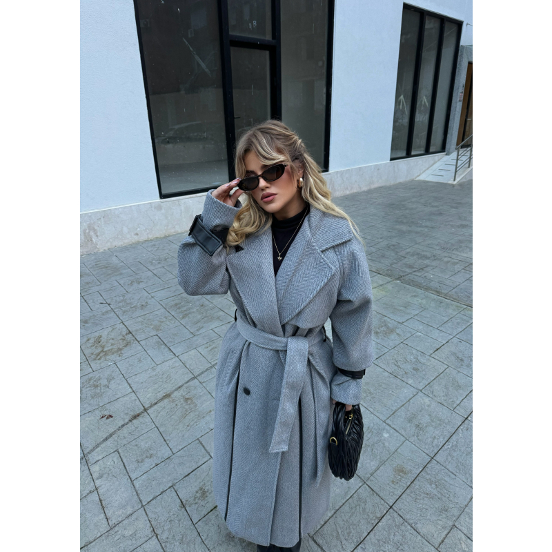 Pallto e gjatë në ngjyrë gri, me rrip në bel dhe kopsat e zeza që i japin një kontrast të bukur. Model elegant dhe i përshtatshëm për përditshmëri gjithashtu dhe per raste te vecanta.