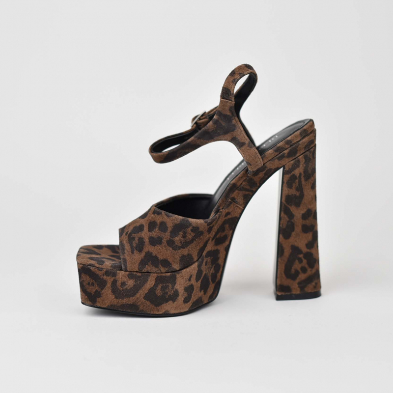 Punuar nga lëkura e bute Ngjyra:printim leopard Siluetë me majë katrore Taka 14 cm Logo e printuar Di Fratelli në shtrojë