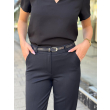 Pantallona klasike kaush, pas trupi per te dhene siluete elegante. 2 xhepa funksionale anesore dhe 2 xhepa fallso nga pas. Shoqerohen me nje rrip te holle te zi.