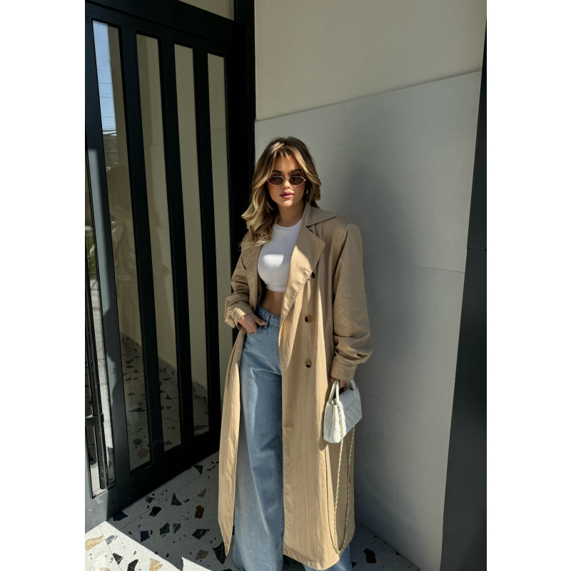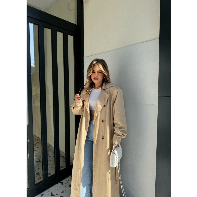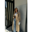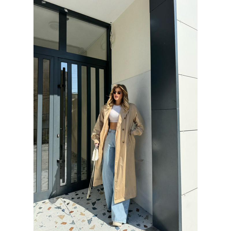 Pardesy me kopsa para.Ka rrip te pjesa e belit.Ka menge te gjata dhe xhepa te pjesa anash.Ka gjatesi normale.Materiali eshte i plote dhe shume i mire.