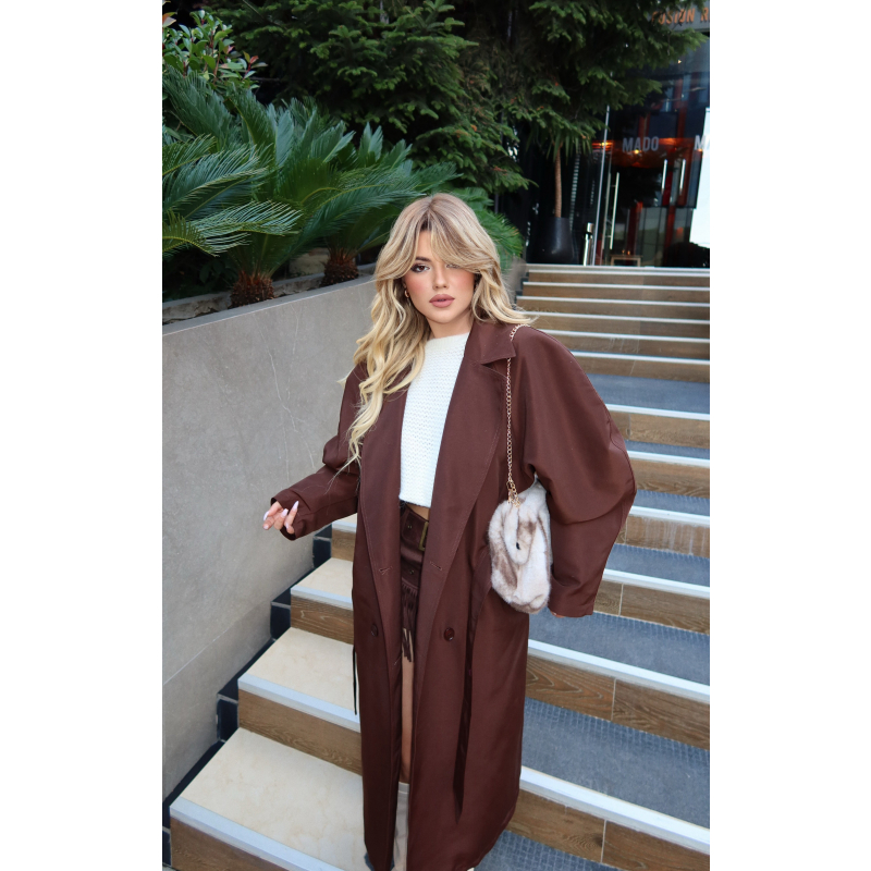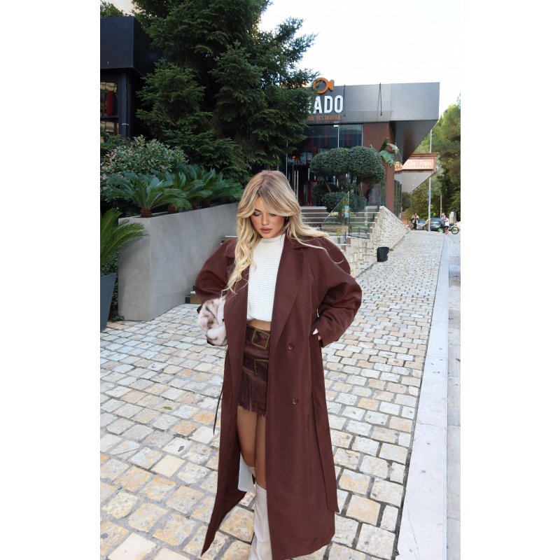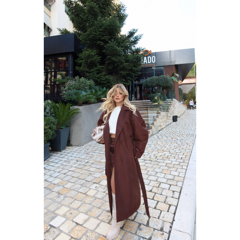 Pardesy ngjyre kafe. Pardesy trecerekshe e lehte dhe shume praktike. Permban xhepa, kopsa dhe rripin e saj komod. Model i thjeshte.