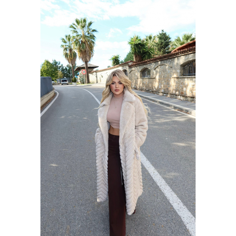 Pellush ngjyre bezhe. Pellush i gjate me qime shume te buta dhe cilesore, material premium. Shume i ngrohte, rezistent dhe model klasik dhe cool.