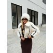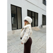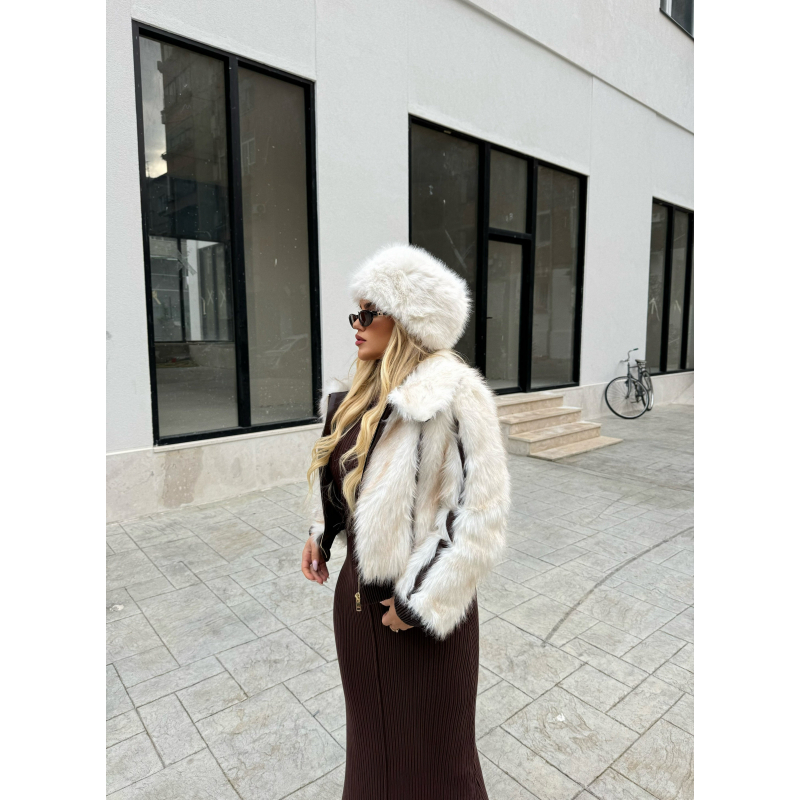 Pellush ne ngjyren e bardhe me detajen e disa vizave kafe. Ideal per tu dukur stil dhe e vecant.