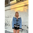 Pellush xhins me rripa lekure ne pjesen e siperme dhe ne bel. Ka material te plote dhe cilesi fantastike. Kombinohet lehtesisht me cdo veshje.