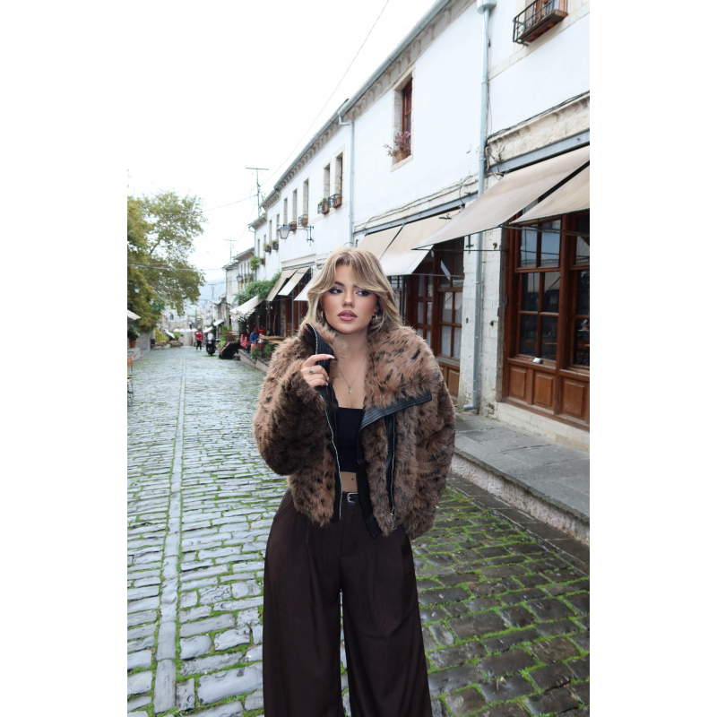 Pellush i shkurter me motive leopardi, eshte stil oversize. Perfekte per nje pamje te vecante dhe stil.