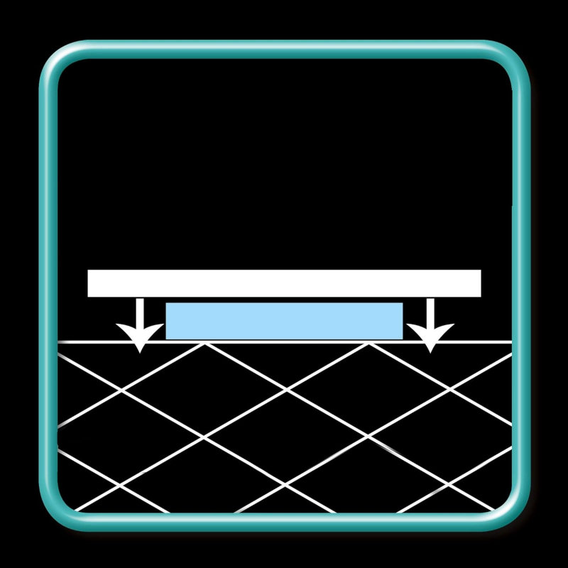 Peshorja ka këmbë autokalibruese, që përshtaten me çdo sipërfaqe të papërsosur, duke siguruar stabilitet maksimal.
