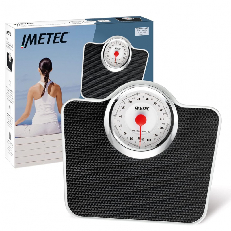 Soliditet, qartësi dhe besueshmëri: që nga sot, me peshoren mekanike Imetec Pro, mund ta lexoni peshën tuaj lehtësisht dhe qartë. Kjo falë dials-it analog në formë ore, me përmasa të mëdha, i projektuar për ta bërë leximin të menjëhershëm dhe të thjeshtë.