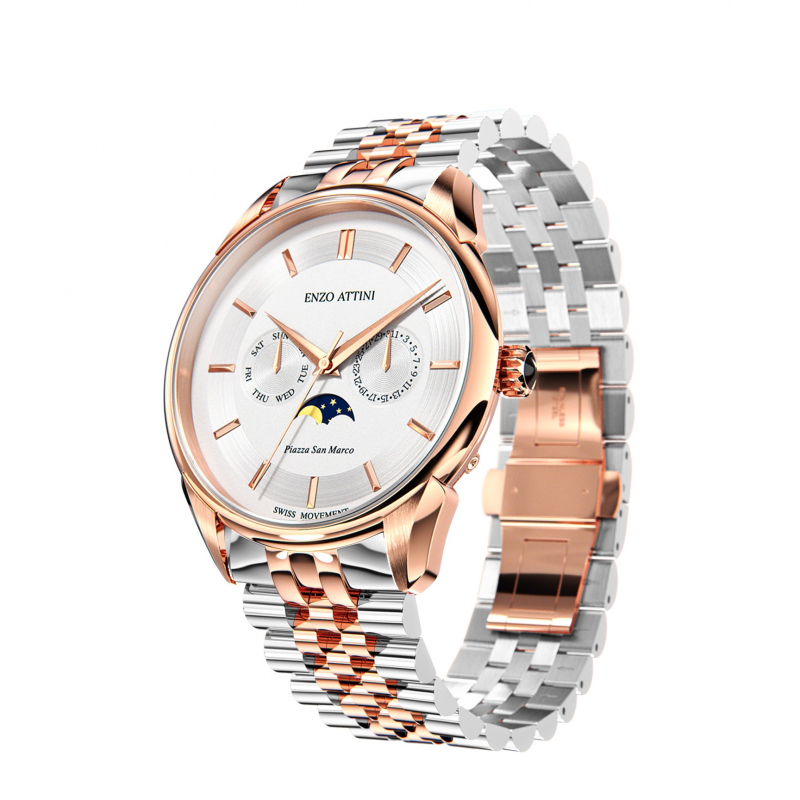• Zinxhiri presidencial: Material stainless steel 316L, ngjyrë silver & rose gold (i larë me ar të vërtetë 18 karat), i përshtatshëm për madhësi kyçi deri në 22cm.