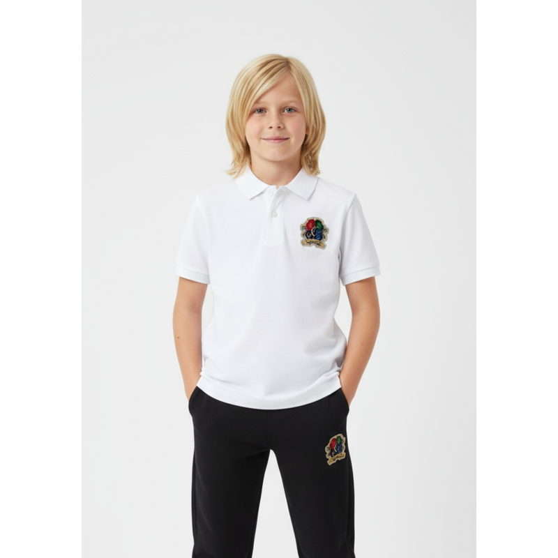 The premium cotton piqué fabric is breathable and lightweight, keeping kids cool and comfortable throughout the day. A bold embroidered crest detail on the chest adds a distinctive character, giving this wardrobe essential a sporty yet polished edge.