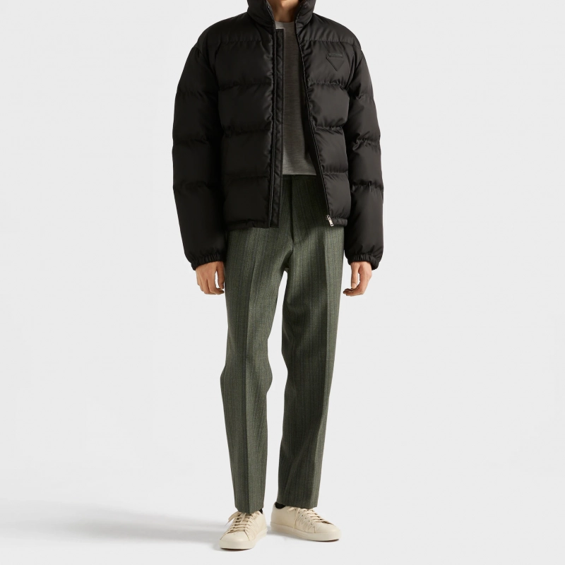 Soft volumes and enveloping lines define this sporty puffer jacket, distinguished by essential, minimalist details. Crafted from Re-Nylon, the design delivers a functional and contemporary character, enhanced by warm goose down padding for optimal comfort.