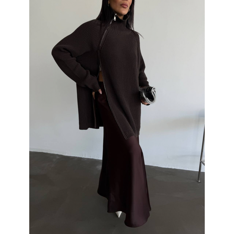 Oversized turtleneck pullover with a side zipper. Premium acrylic material with a chunky knit.