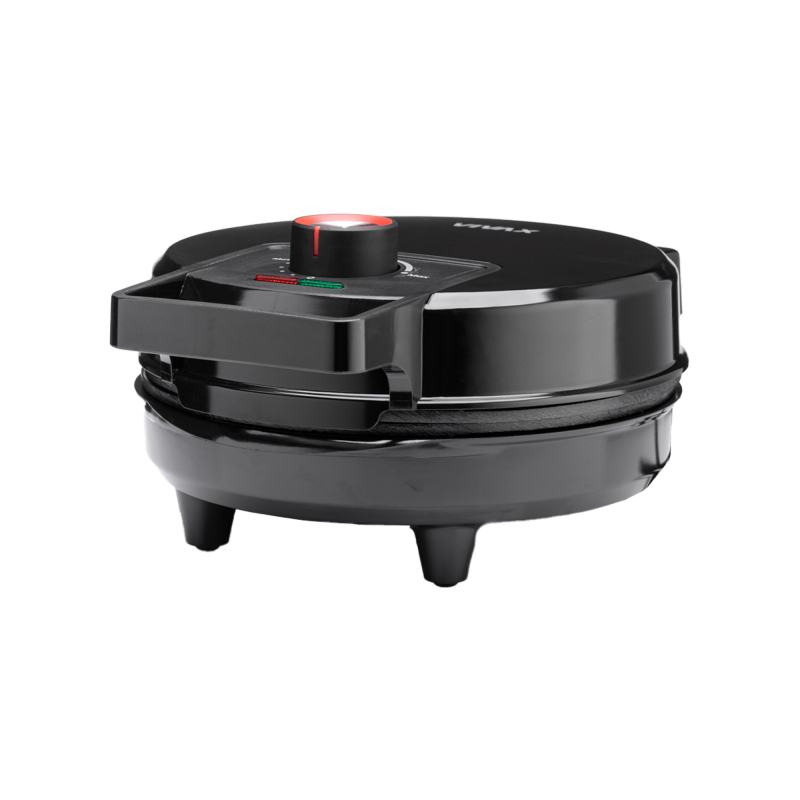 Ajo përfshin termostat të integruar që mban temperaturën konstante gjatë pjekjes. Pllakat metalike me sipërfaqe jo-ngjitëse parandalojnë ngjitjen e brumit dhe lehtësojnë pastrimin pas përdorimit.