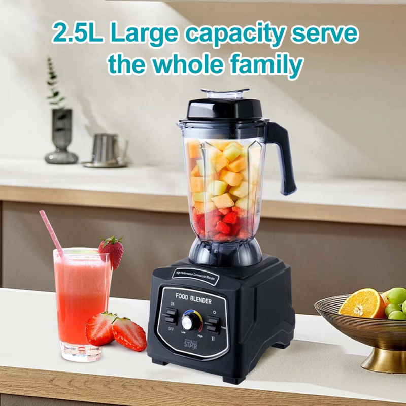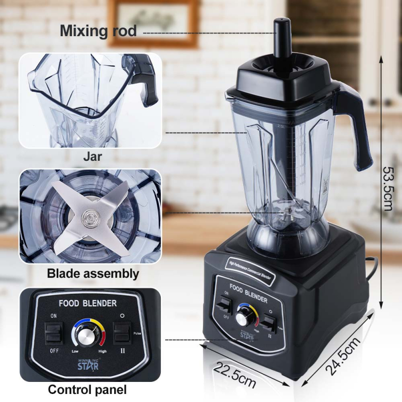 Blender Profesional 2.5Lt 1680W ST-5904 Winning Star. Zgjidhja ideale për ata që kërkojnë një pajisje të fuqishme dhe të gjithanshme për kuzhinën e tyre. Me një motor bakri të pastër 1680W, shpejtësi të ndryshueshme dhe një kapacitet të madh prej 2.5 litrash, ky blender është i përsosur për përdorim familjar, komercial dhe në hotele.