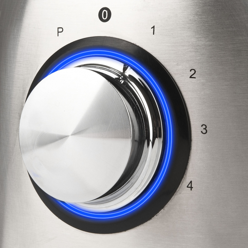 Motori me fuqi 1000W ofron performancë të lartë për çdo lloj përpunimi. Falë 6 thikave prej çeliku inox, blenderi garanton përzierje të njëtrajtshme dhe rezultate të shpejta. Pajisja lejon frullim, emulsifikim, copëtim, përzierje dhe thërrmim akulli pa vështirësi.