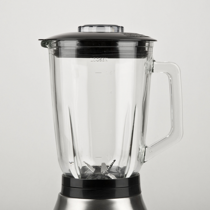 Dizajni modern dhe trupi prej çeliku inox i japin pajisjes pamje elegante dhe qëndrueshmëri të lartë. Kapaku me guarnicion sigurie parandalon rrjedhjet gjatë punës. Sistemi i sigurisë nuk lejon funksionimin e blenderit nëse ena nuk është vendosur saktë në bazë.