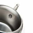 Çajniku nxehet shpejt dhe e ruan mirë nxehtësinë. Baza e kapsuluar me fund të trefishtë të presuar me forcë mbi 1500 ton siguron shpërndarje të barabartë të nxehtësisë. Kapaku është i lëvizshëm për mbushje të lehtë dhe grykë e përshtatshme për derdhje të lehtë dhe të sigurt. Ngjyra metalizato e bën këtë çajnik me një dizajn të rafinuar edhe zbukurim perfekt për kuzhinën tuaj.