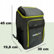 Pëlhura e jashtme është e fortë dhe rezistente ndaj grisjes, duke garantuar qëndrueshmëri dhe jetëgjatësi në përdorim. Dizajni me zinxhir të lehtë dhe të sigurt ndihmon në ruajtjen e ajrit të ftohtë brenda, pa humbje të temperaturës gjatë hapjes. Forma e çantës së shpinës siguron shpërndarje të mirë të peshës dhe transport të rehatshëm.