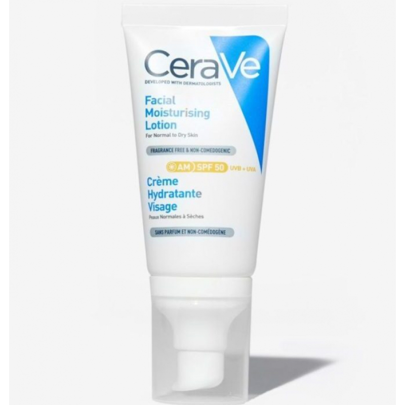 I zhvilluar me dermatologë, CeraVe Face Moisturizer SPF50 siguron hidratim të përditshëm dhe barrierë UVB + UVA duke ndihmuar në ruajtjen e barrierës mbrojtëse të lëkurës. Tekstura e saj e lehtë dhe jo e yndyrshme siguron hidratim gjatë gjithë ditës dhe që nga përdorimi i parë.