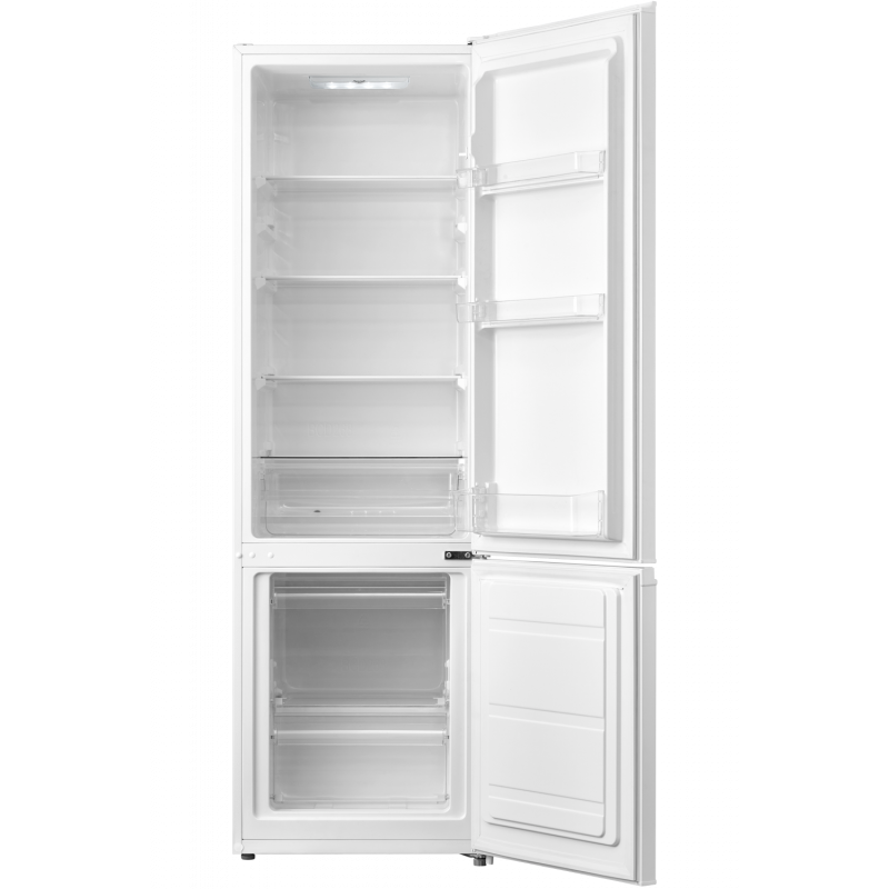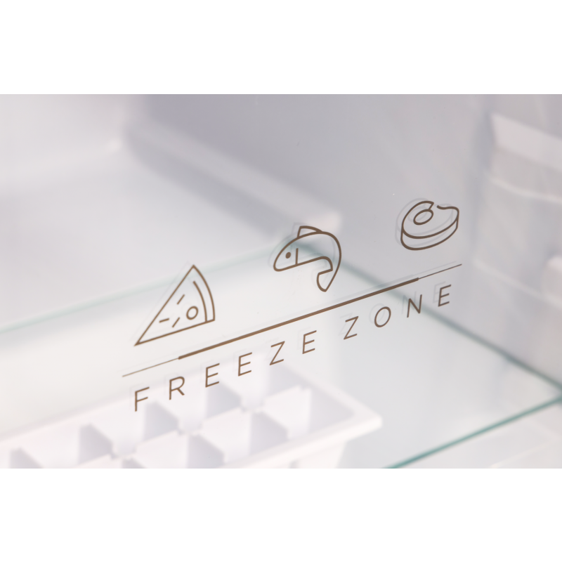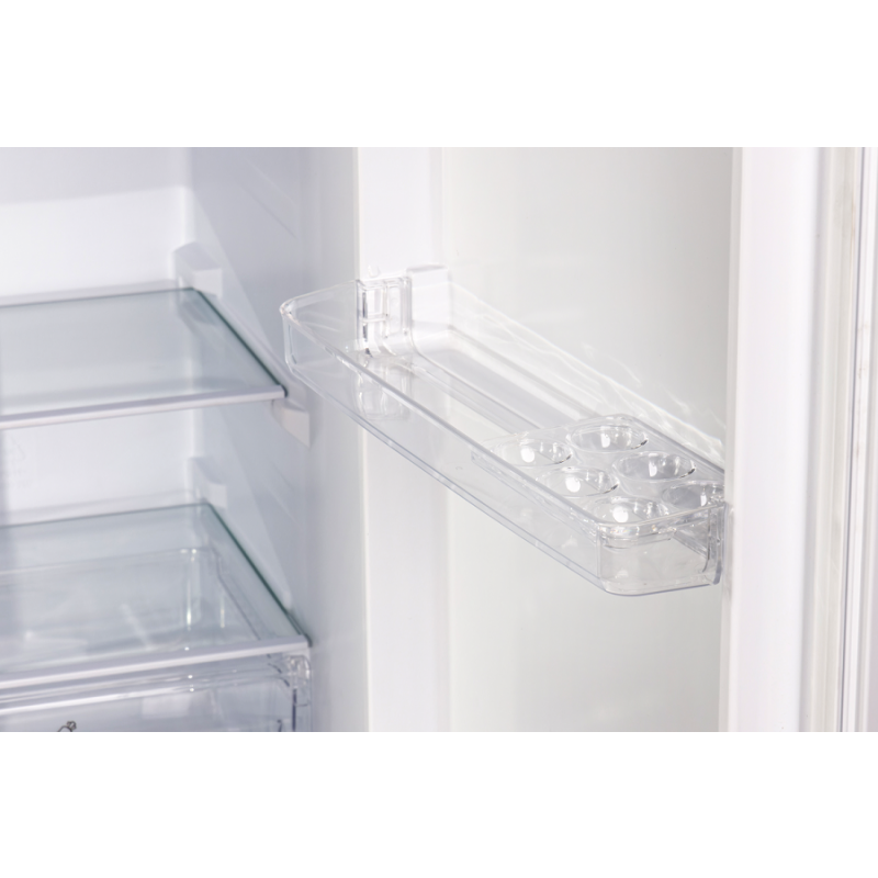 Dizajni i tij minimalist me ngjyrë të bardhë klasike e bën të përshtatshëm për çdo ambient kuzhine. Dyert janë prej metali të pikturuar me hapje të këmbyeshme, për fleksibilitet maksimal në vendosje. Me klasë energjie E, ky frigorifer kombinon efikasitetin dhe performancën me kosto të ulët.