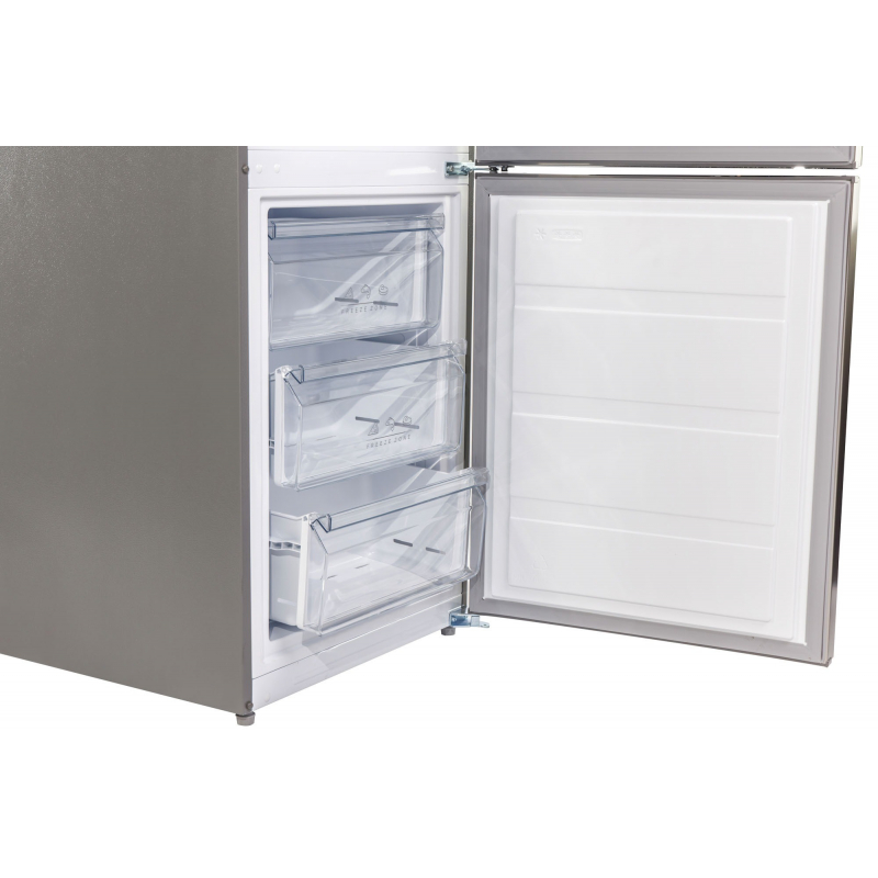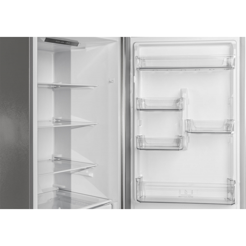 Dizajni elegant inox e bën të përshtatshëm për çdo kuzhinë moderne. Në pjesën e përparme ndodhet një ekran LED me kontroll dixhital, që ju lejon të rregulloni temperaturën me saktësi. Funksioni Fast Freeze ngrin shpejt produktet e sapoblera, ndërsa ndriçimi LED me efikasitet të lartë ndihmon në kursimin e energjisë.