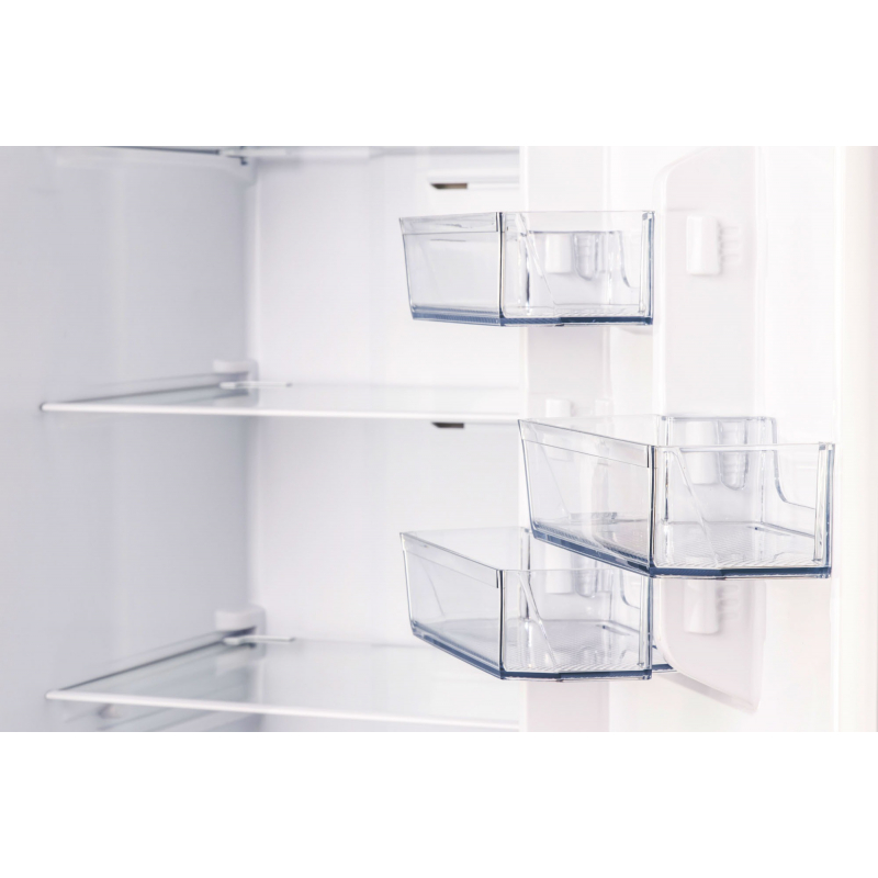 Me një kapacitet total 310 L, nga të cilat 224 L frigorifer dhe 86 L ngrirës, ofron hapësirë të bollshme për familje me shumë anëtarë. Raftet e qelqit të temperuar janë të qëndrueshme dhe të lehta për t’u pastruar. Sirtarët transparentë lehtësojnë organizimin e ushqimeve të freskëta dhe të ngrira.
