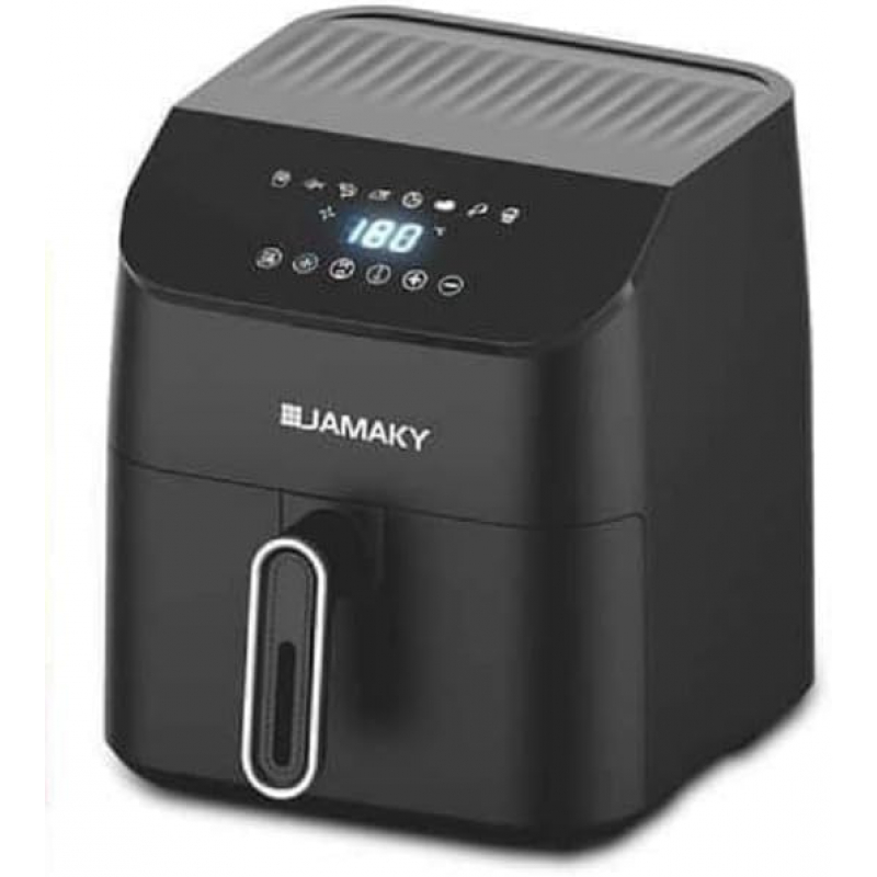 Fritezë me Ajër (Air Fryer) 5.5L 1800W JMK5005 për skuqje dhe pjekje pa vaj do t'ju ndihmojë të gatuani duke ruajtur vlerat ushqimore, shijen dhe aromën. Me këtë Fritezë me Ajër mund të bëni skuqje dhe pjekje pa vaj. Do të shijoni pjata me një sipërfaqe krokante të jashtme dhe lëng brenda.