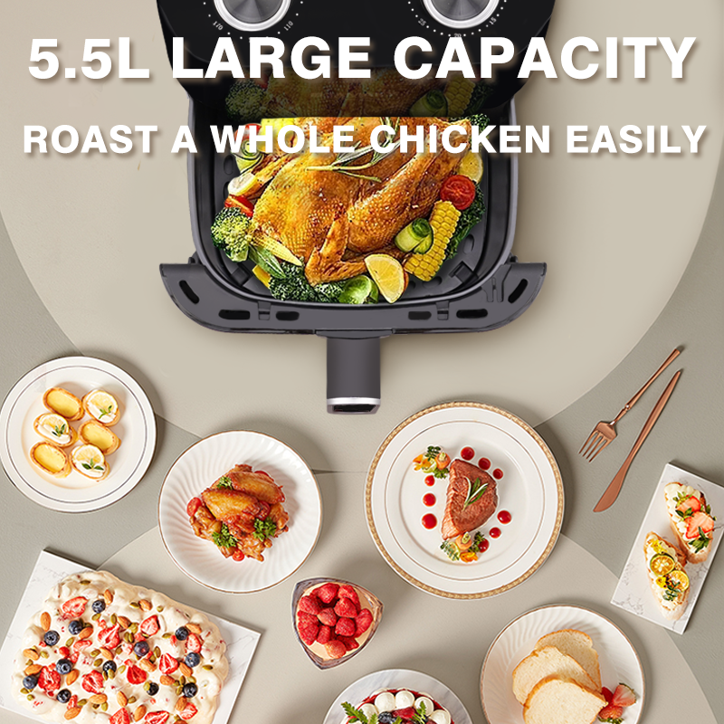 Nëse familja juaj i pëlqen ushqimet e skuqura, kjo fritezë është e përkryer për ju. Pse duhet të zgjedhim friteza me ajër? Duke qenë se ajri brenda fritezës qarkullon 360°, ai arrin të korracojë ushqimin në pak sekonda. Kjo i bën të skuqurat krokante nga jashtë dhe gjithë lëng nga brenda. Nëse doni përdoreni vajin vetëm për marinim (një lugë vaj mjafton për 1 racion patate). Kjo i bën të skuqurat në këtë fritezë shumë herë më të shëndetshme se ato që përgatiten në tigan ose friteza tradicionale me vaj..