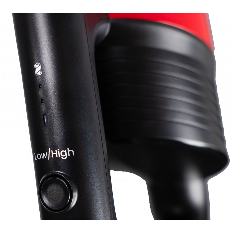 Dizajni 2 në 1 lejon përdorim si fshesë vertikale ose fshesë dore. Ena e pluhurit 0.6L zbrazet lehtë dhe lahet me ujë së bashku me filtrin. Pozicioni shtrirje 0°, zgjatimi për hapje të ngushta dhe furçat e përfshira sigurojnë pastrim në çdo cep.
