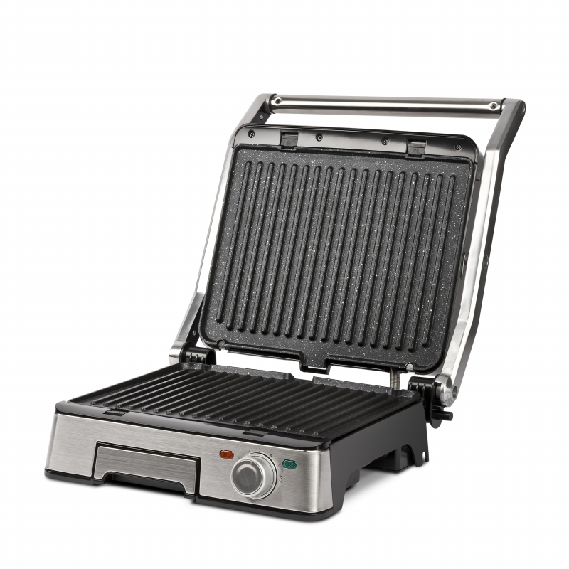 Lavica Inox ofron 3 mënyra përdorimi, duke e bërë një pajisje shumë praktike për çdo kuzhinë. Mund të përdoret plotësisht e hapur për grilimin e perimeve dhe peshkut, në pozicion gjysmë të hapur si bistekierë kontakti, ose plotësisht e mbyllur për përgatitjen e sanduiçëve, panineve, hamburgerëve dhe paninëve amerikanë.