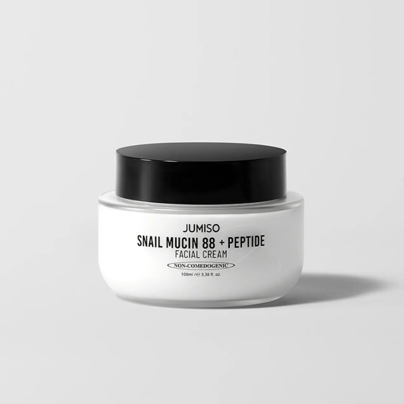 Jumiso Snail Mucin 88 + Peptide Facial Cream është një krem hidratues i formuluar për të mbështetur ndjesinë e lagështisë dhe rehatisë në lëkurë. Ai përmban 88 % të esenës të kërmillit, i njohur për hidratimin dhe mbajtjen ndjesisë elastike të lëkurës. Formula përfshin niacinamide për balancimin të tonit të lëkurës dhe për të dhënë ndjesi më të njëtrajtshme të sipërfaqes. Kompleksi i peptideve kontribuon në një ndjesi të fortë të lëkurës që të duket më e plotë. Kjo kombinim i përbërësve e bën këtë krem hidratues të përshtatshëm edhe për lëkurë të ndjeshme apo të dukshme si e dëmtuar.
