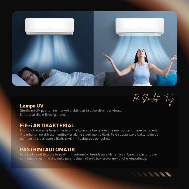 Klasa energjie A++ në ftohje dhe A+ në ngrohje e vendos këtë model në mesin e pajisjeve më efikase në këtë kategori çmimi. Pajisja vjen me funksione shtesë si Auto Clean, Turbo, Sleep Mode, Timer dhe shkrirje inteligjente, që e bëjnë përdorimin të lehtë dhe të sigurt.