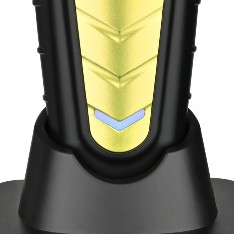 Makina vjen me një ekran LED që tregon nivelin e baterisë dhe statusin e karikimit, duke e bërë përdorimin më të lehtë dhe të përshtatshëm. Seti përfshin gjithashtu 8 krehera udhëzues (3/6/10/13/16/19/22/25mm), furçë pastrimi, vaj lubrifikues, kabull karikimi USB dhe bazë karikimi.