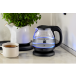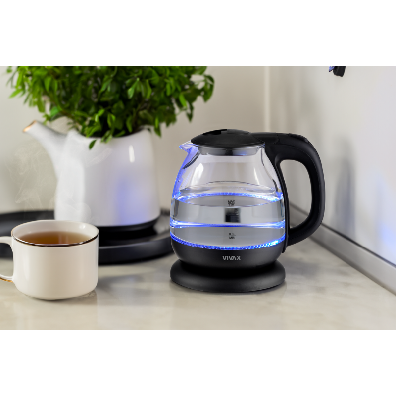 Trupi i bërë prej qelqi rezistent ndaj nxehtësisë lejon të shihni procesin e ngrohjes në çdo moment. Ndriçimi LED i integruar krijon efekt të bukur gjatë vlimit dhe tregon kur pajisja është aktive.