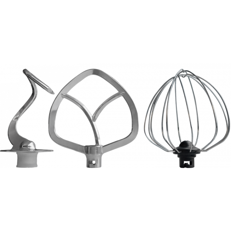 Ky mikser përfshin një set të plotë aksesorësh profesionalë: rrahës për krem pana, mikser për krem, mikser për brumë dhe kapak transparent kundër spërkatjeve me hapje për shtimin e përbërësve gjatë punës.