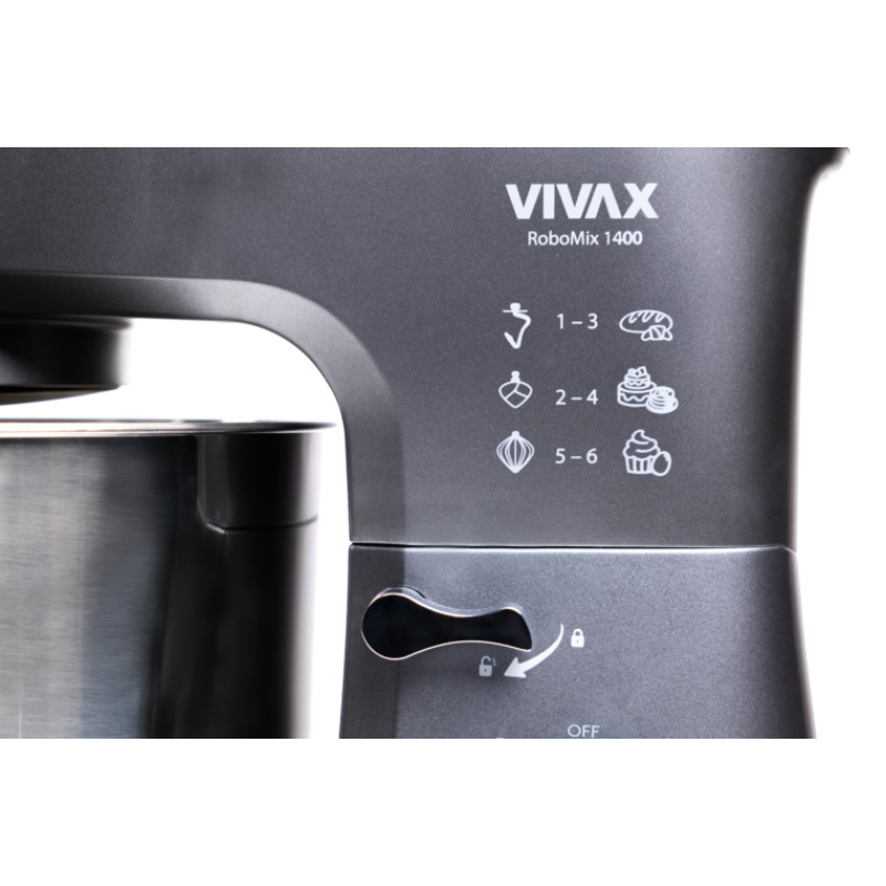 Robot Mikser VIVAX RM-61400SX është një mikser i fuqishëm dhe i qëndrueshëm për çdo kuzhinë moderne. Me fuqi 1400W dhe 6 shpejtësi pune + Turbo Pulse, ai përzien me lehtësi çdo përbërës — nga brumërat e fortë deri te kremrat e butë.