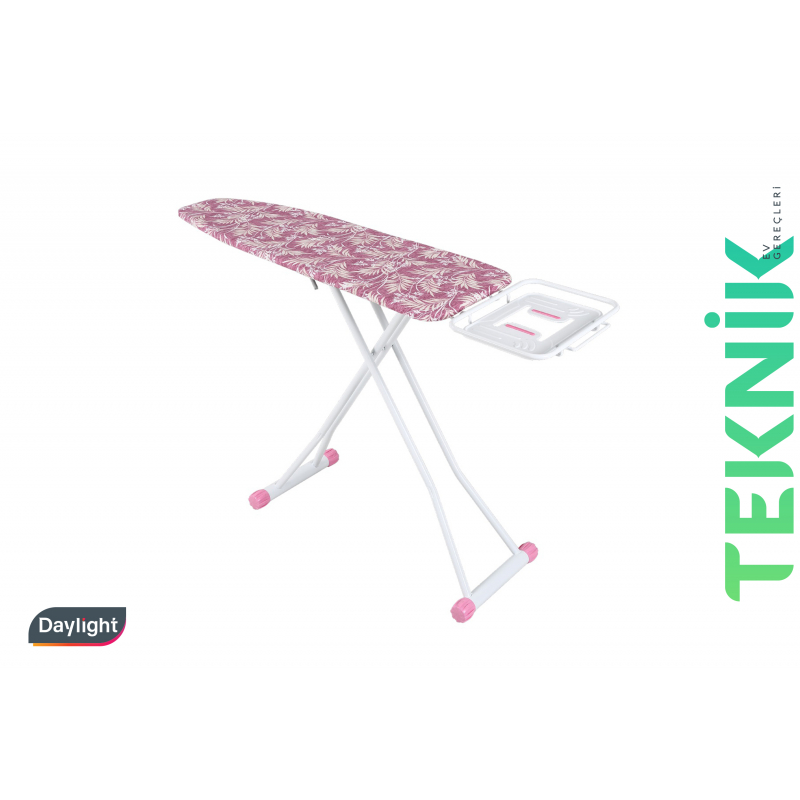 Dërrasa e hekurosjes është monoblok çeliku i presuar dhe i përforcuar, duke garantuar stabilitet gjatë përdorimit dhe jetëgjatësi të lartë. Sipërfaqja është e mbuluar me pëlhurë pambuku shumëngjyrëshe dhe rezistente ndaj nxehtësisë, që i jep një pamje të freskët dhe ruan sigurinë edhe gjatë përdorimit të zgjatur.