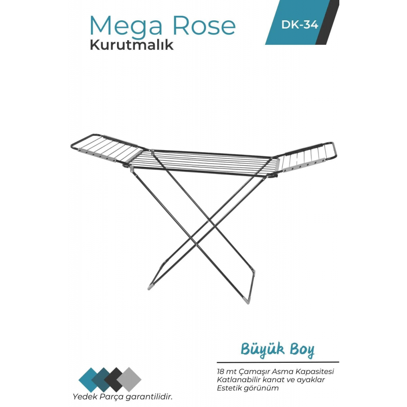 Tharëse Rrobash MEGA ROSE DK34 – 18m është një nga modelet më praktike dhe të lehta për përdorim në hapësira të vogla. E ndërtuar me strukturë alumini të qëndrueshëm dhe të anodizuar, kjo tharëse ofron rezistencë të lartë ndaj ndryshkut dhe lagështirës, duke e bërë të përshtatshme si për ambiente të brendshme, ashtu edhe për ballkone apo tarraca.
