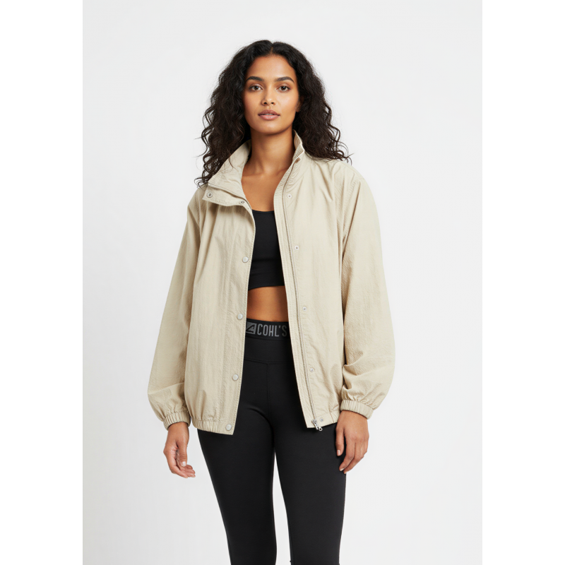 This puffed windbreaker jacket combines a durable 100% nylon outer layer for wind and water resistance with a 100% cotton inner lining for breathable softness against the skin. The regular-fit design makes it easy to layer, while the attached hood, elastic cuffs, and full-zip front.