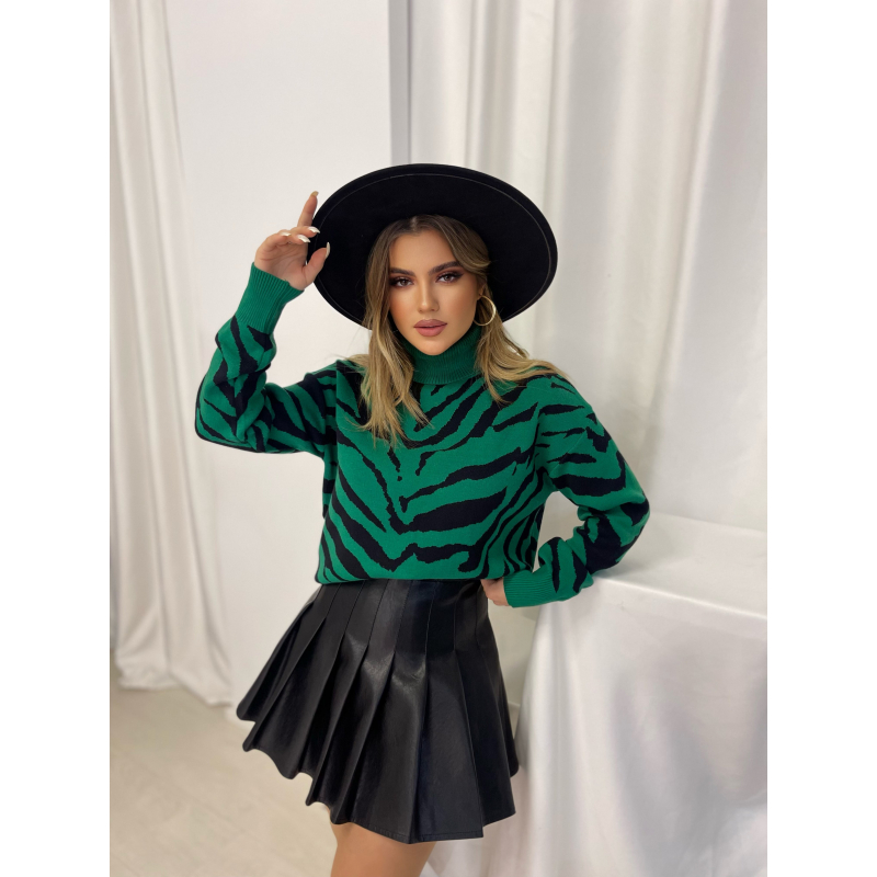 Pulover zeber me golf te plote me menge te gjata dhe doreza ne fund te mengeve. Pulovra ka gjatesi normale dhe eshte e kombinueshme.Modeli vjen ne dy ngjyra: jeshile dhe e zeze.