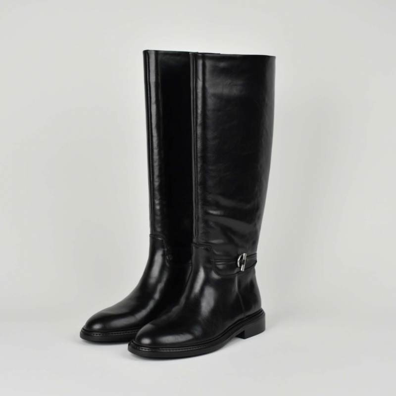 Cizme për femra E punuar nga lëkura Ngjyra: e zezë Logo e printuar Di Fratelli në shtrojë