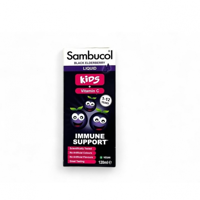 Sambucol Kids 120ml është një suplement ushqimor në formë shurupi, i formuluar posaçërisht për fëmijë, me bazë ekstrakt të frutit të boronicës së zezë (Sambucus nigra), i njohur për veprimin e tij natyral antiviral dhe përforcues të sistemit imunitar. I pasuruar me vitaminë C dhe zink, Sambucol ndihmon në mbrojtjen e organizmit nga ftohjet, gripi dhe infeksionet sezonale. Përfitimet kryesore: Forcon sistemin imunitar natyralisht. Redukton kohëzgjatjen dhe ashpërsinë e simptomave të ftohjes. Me shije të këndshme frutash, e përshtatshme për fëmijët. Pa ngjyrues artificialë, gluten dhe alkool. Përdorimi: Fëmijët 1–6 vjeç: 5 ml një herë në ditë. Fëmijët mbi 6 vjeç: 5 ml dy herë në ditë. (Për përdorim më intensiv gjatë simptomave, ndiqni udhëzimet e paketimit ose të mjekut.) I përshtatshëm për: Fëmijë mbi 1-vjeç. Mund të përdoret gjatë gjithë vitit për imunitet të fortë ose në mënyrë të përqendruar gjatë stinës së ftohjeve.