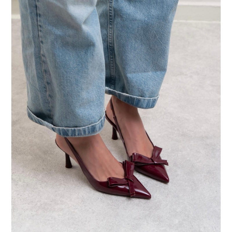 Taka burgundy me fjongo dhe me take normale. Material lekure. Teper komode dhe shume stil.