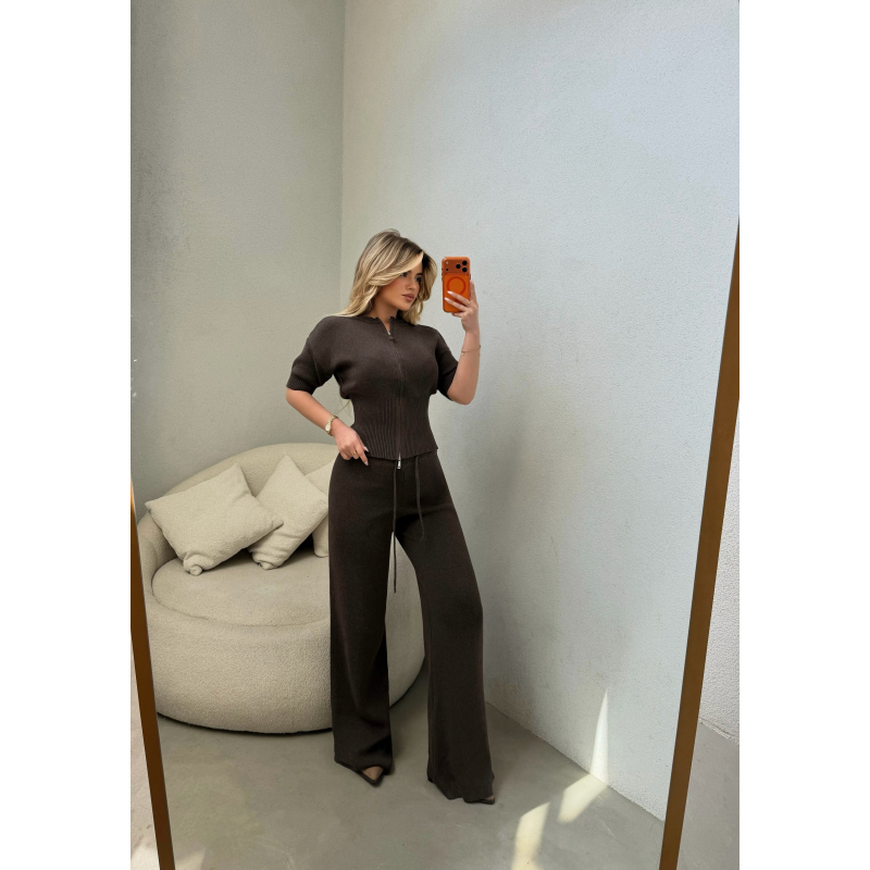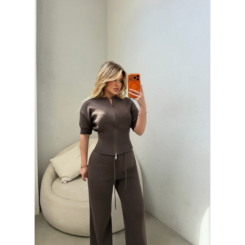 Set bluze me menge te shkurtra dhe tuta me llastik ne bel. Bluza mbyllet me zinxhir para. Eshte me llastik tek pjesa e belit duke e theksuar akoma me shume.