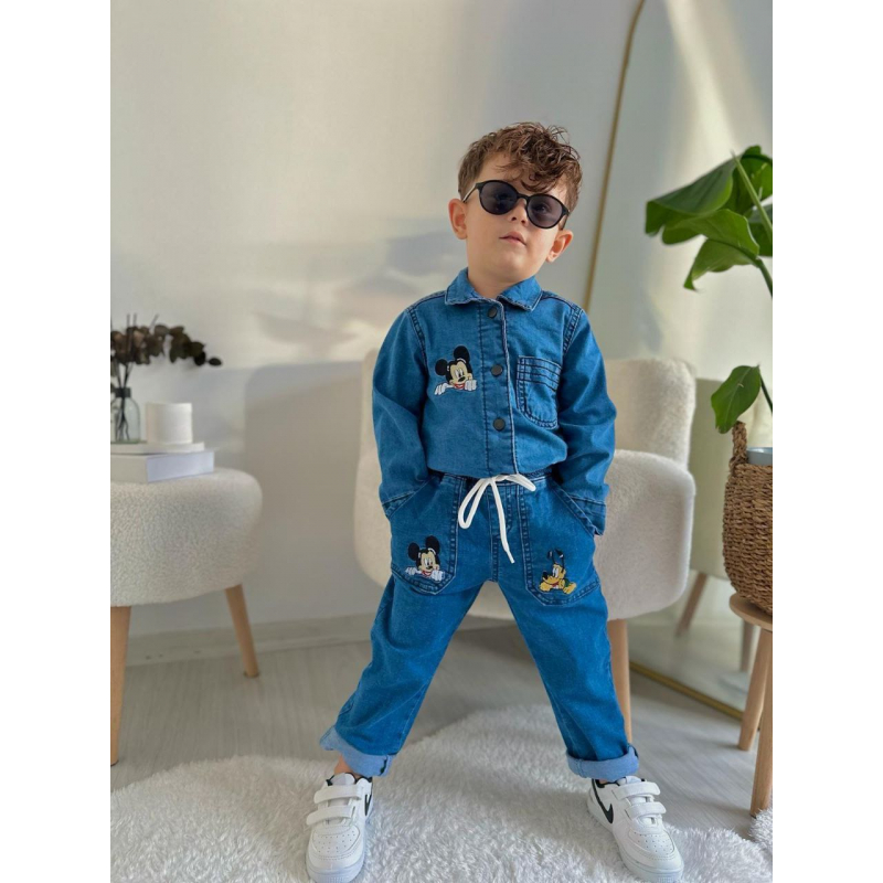 Seti xhakete dhe pantallona. Xhaketa dhe pantallonat vijne me dizenjon vizatimor "Mickey". Kane detajin e xhepave ne pjesen perpara. Material i plote, cilesi fantastike.