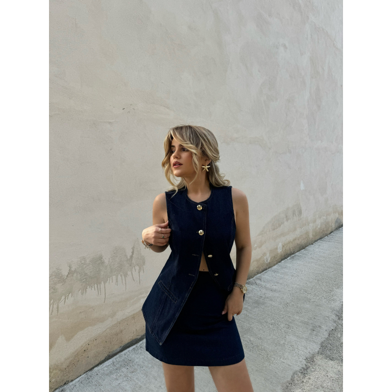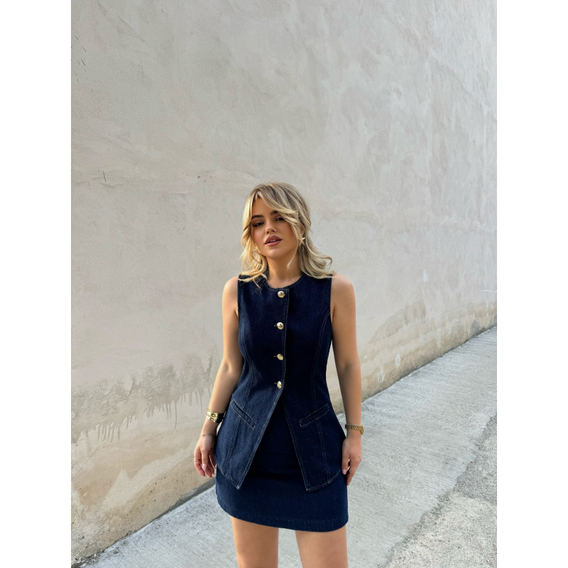 Set xhins me jelek me kopsa para dhe fund te shkurter. Ka material te plote dhe cilesi fantastike. Teper komod dhe stil.