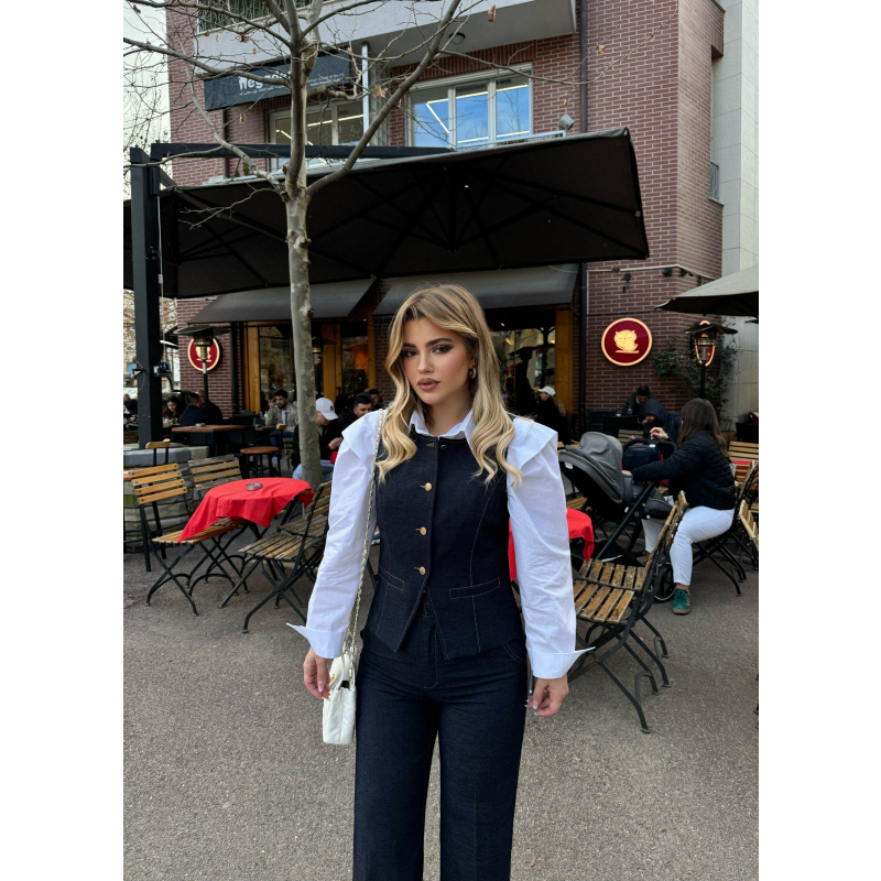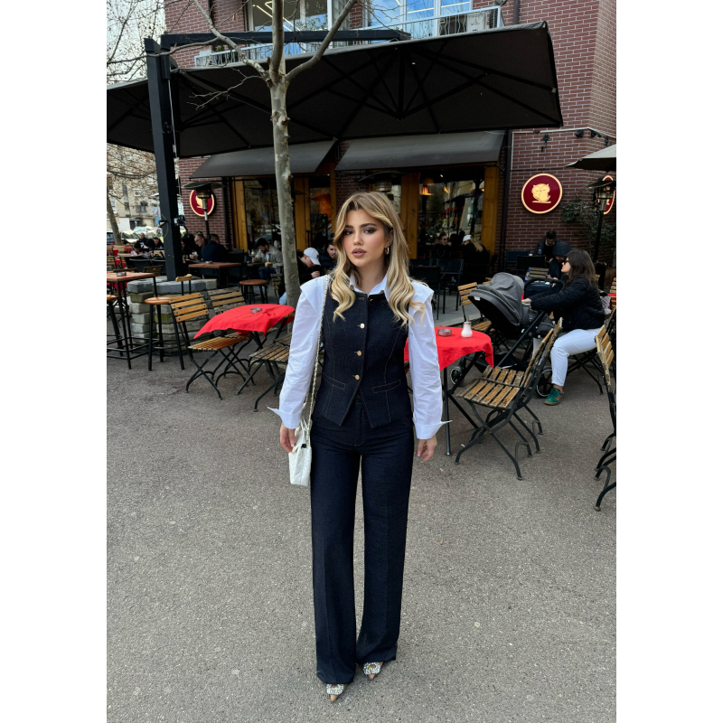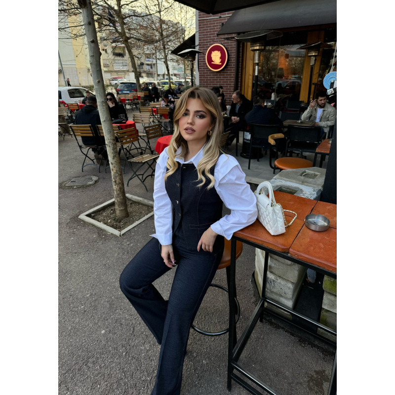 Set xhins jelek dhe pantallona te gjera. Jeleku vjen me kopsa para. Material i plote shume i mire. Rrin perfekt ne trup.