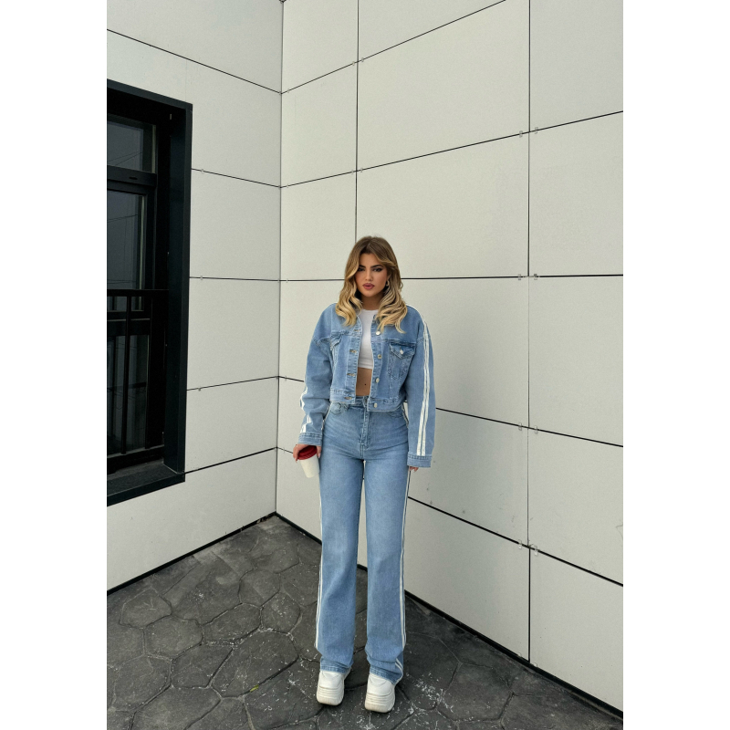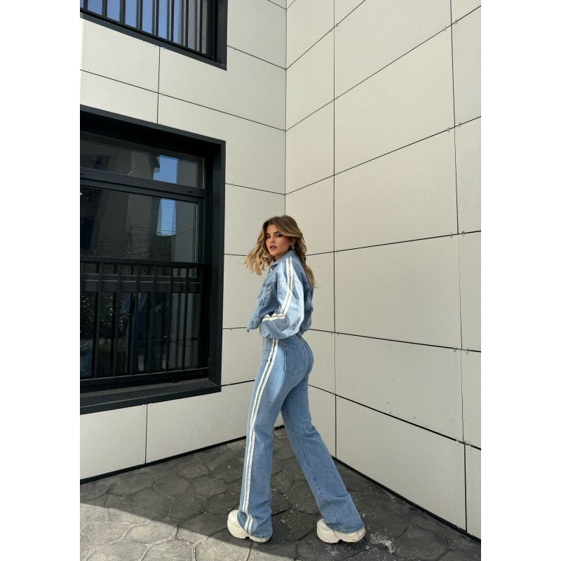 Set xhins me xhakete te shkurter me viza ne pjesen e kraheve. Xhinse te gjera rrine shume mire pas trupi. Xhins i plote material shume i mire.