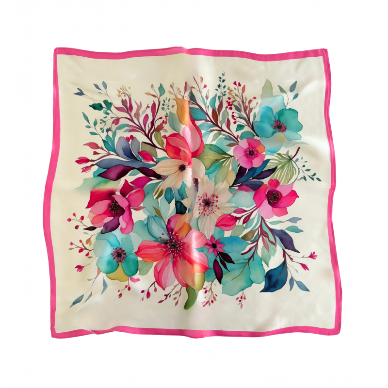Fular mendafshi 50cmx50cm me lule te ndryshme ne mes